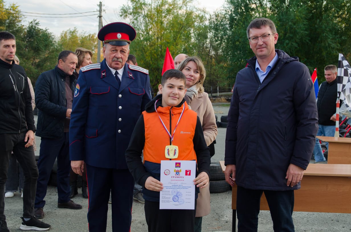 Церемонию проведения награждения Первенства на кубок Главы Администрации Мартыновского района осуществляли Глава Администрации Мартыновского района О.В. Дьяконов, Атаман Мартыновского юртового Донского казачьего общества И.Г. Чеботарев, Помощник депутата законодательного собрания РО от партии Единая Россия Александра Александровича Ремета, Е.В. Кожевникова. В положении первенства победители определялись по следующему принципу. В каждой группе было награждено три спортсмена первое место , три спортсмена второе место и три спортсмена третье место которые в своих группах между собой показали наилучшие результаты по времени , всего награждённых по этому правилу было 15 детей золотыми медалями и грамотами за первое место, 15 детей серебряными медалями и грамотами за второе место и 15 детей бронзовыми медалями и грамотами за третье место. Самыми главными призами от депутата законодательного собрания РО от партии Единая Россия Александра Александровича Ремета , а это денежные сертификаты на покупку в сети магазинах Спорт Мастер и кубками , дипломами за первое, второе и третье место Главы Администрации Мартыновского района были награждены спортсмены которые показали самое лучшее время преодоления трассы в течении пяти кругов, а именно: первое место Яковлев Максим, второе место Катинёв Иван, третье место Добровольский Максим. В подведении итогов соревнований Начальник ПОУ Мртыновская АШ РО ДОСААФ России РО вручил благодарственные письма депутату законодательного собрания РО от партии Единая Россия Александру Александровичу Ремета за помощь в приобретении шин на картинг в сумме 25 000 рублей, ИП Дмитрию Евгеньевичу Евсеневу за помощь в приобретении шин на картинг в сумме 25 000 рублей, Атаману Мартыновского юртового Донского казачьего общества Игорю Геннадьевичу Чеботареву за сотрудничество и совместную работу, коллектив МАУК «КДЦ» «Мартыновский районный Дома культуры» за прекрасное музыкальное сопровождение первенства, судей соревнований, а тпк же начальником автошколы были вручены членские билеты, члена ДОСААФ России главе Администрации Мартыновского района О.В. Дьяконову и председателю местного отделения Движения первых Мартыновского района Е.В. Чвановой.